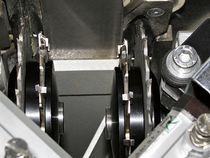 Перемещение цепи транспортера происходит по двум закаленным стальным направляющим, одной - закругленной, второй - плоской, что обеспечивает прямолинейность перемещения и устойчивость к боковым смещениям.