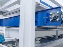 Уникальная система SERGIANI c низко расположенным транспортером со сверхпрочными механическими элементами и майларовой лентой, приводимой в движение от двух электродвигателей, управляемых двумя частотными преобразователями. В отличие от традиционных цепных систем подачи данная система постоянно контролирует правильность натяжения майларовой ленты, что значительно снижает объем обслуживания и необходимость в запчастях и позволяет добиться максимальной надежности и долговечности. Кроме того, данный транспортер позволяет перемещать значительно более тяжелые щиты — с массой более 200 кг.